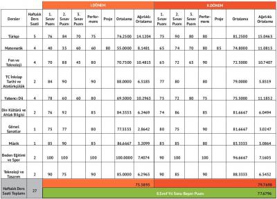 6, 7 ve 8. sınıf yılsonu başarı puanlarının aritmetik ortalaması |